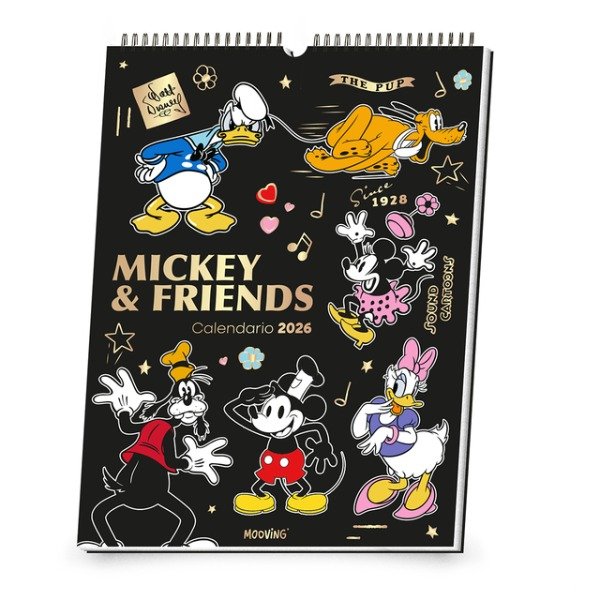 Calendario 40x30, 12 meses, plancha de stickers y anillado para colgar.